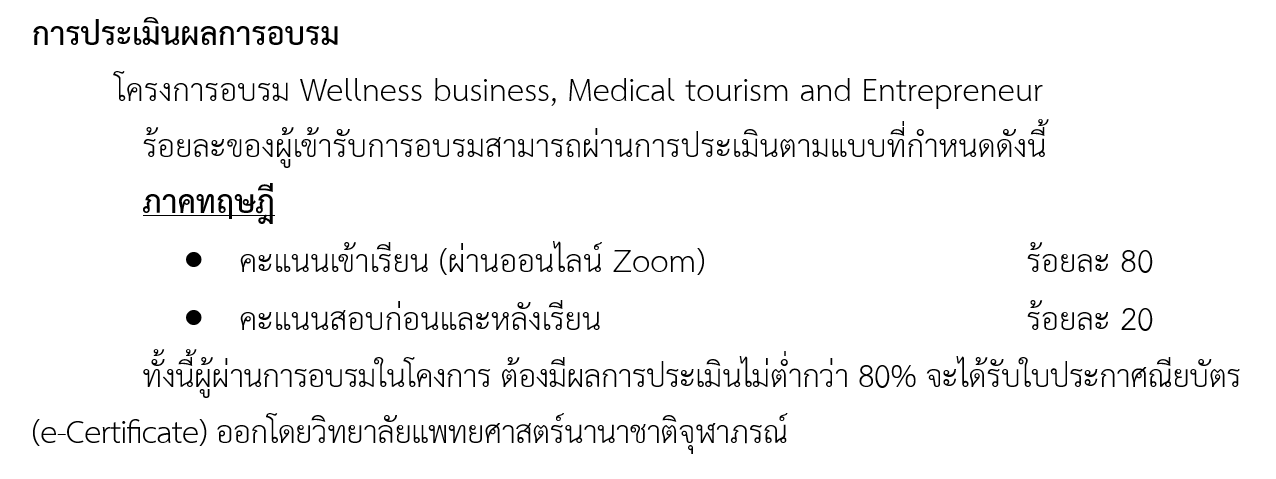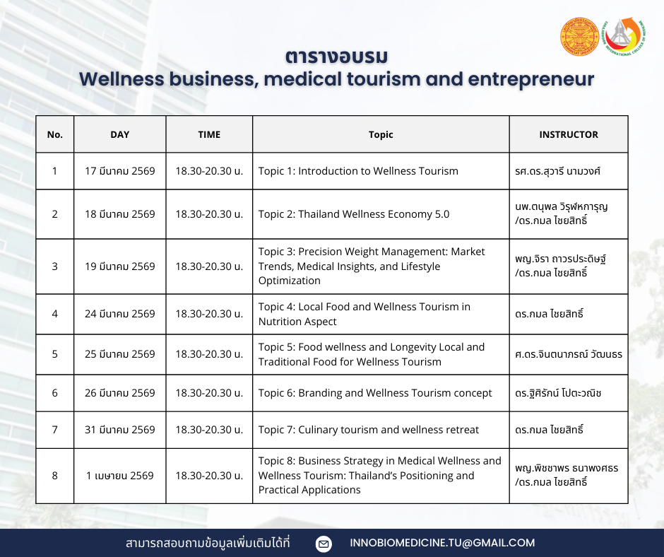 โครงการอบรม Wellness business, Medical tourism and Entrepreneur ประจำปี 2569
